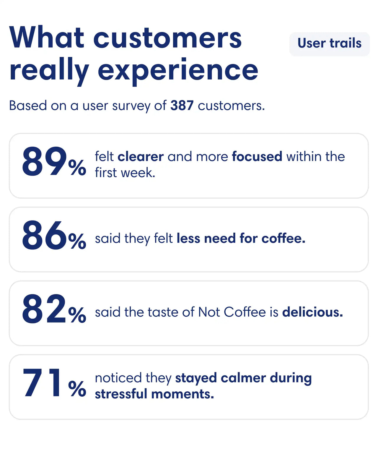 Not Coffee is made for people who want to feel focused without the jitters or crashes. It’s a delicious, healthy daily ritual that helps you get through the day in a natural way.